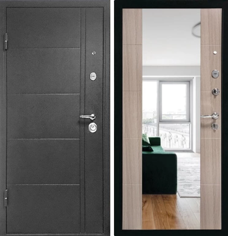 Надежная входная Дверь Эверест Зеркало Сандал Серый премиум класса по цене 33 760 руб. Большая толщина стали защитит от проникновения в ваш дом, квартиру или коттедж. Используется очень качественная фурнитура: замки, цилиндры, ручки, защелки. Покрытие и отделка двери изготовлено под внимательным контролем производителя. Дверь имеет долгий срок службы и гарантию.